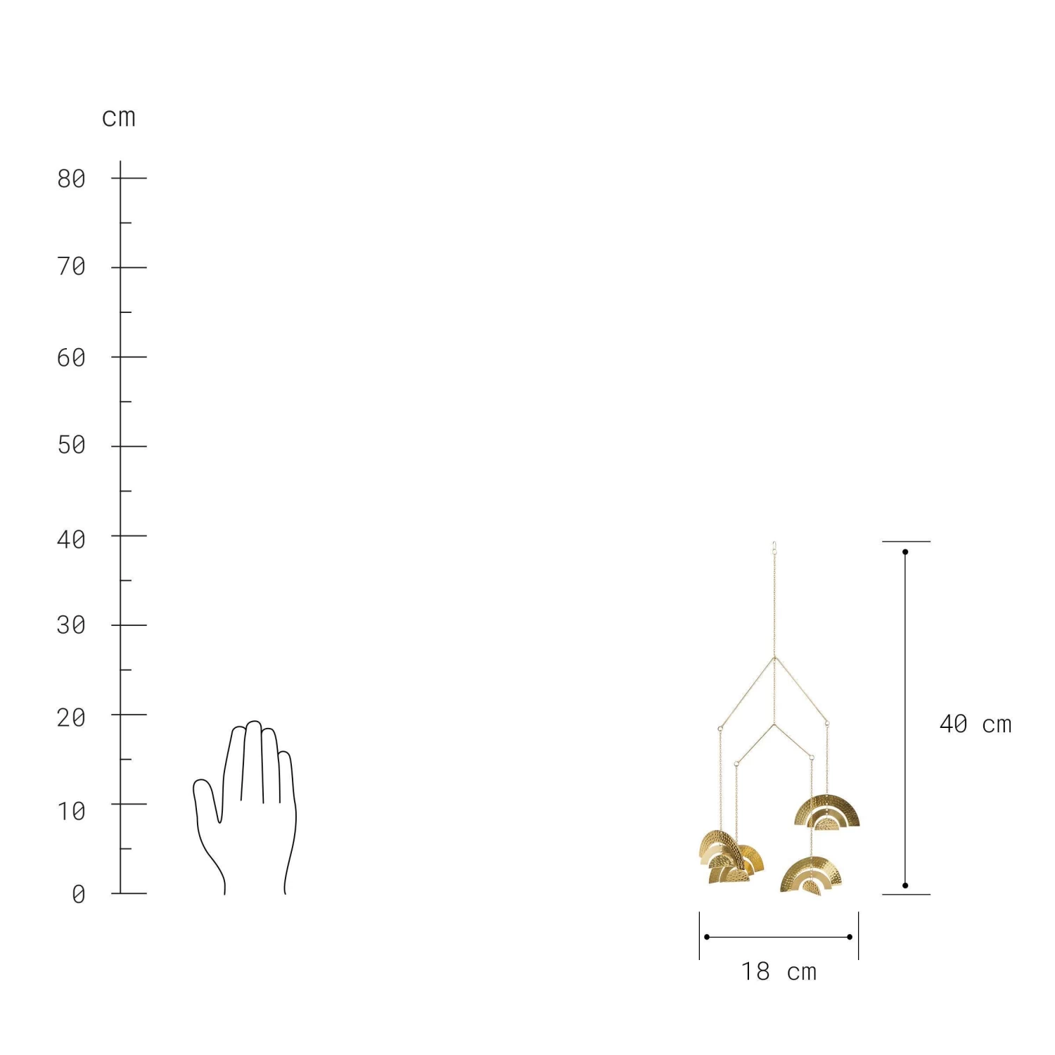Sie genießen meditative Momente, während Sie in aller Ruhe dem goldfarbenen Over the Rainbow Mobile aus Eisen zuschauen. Seine 4 Ornamente bewegen sich sanft im Luftzug, und bei diesem dekorativen Anblick vergessen Sie alles um sich herum.